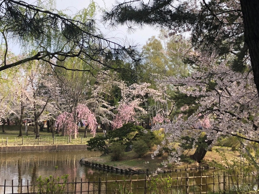 合浦公園の淡いピングと濃いピンクのコントラストが美しい桜の風景