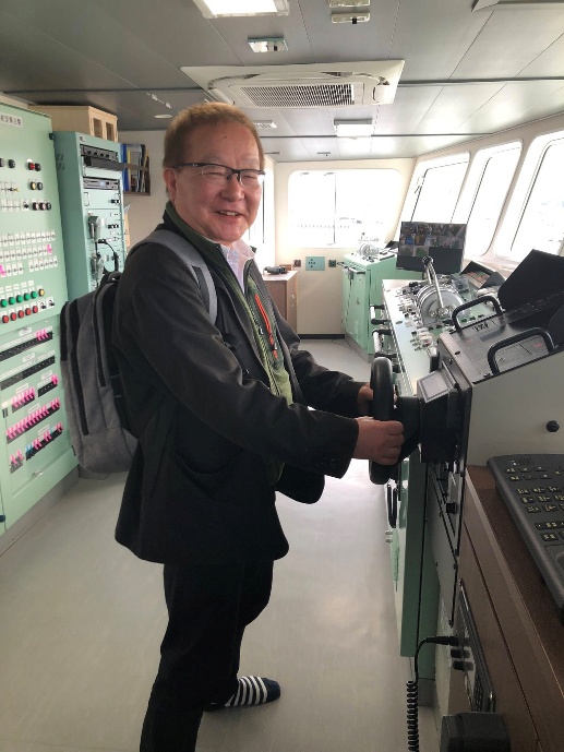 かけはし操舵室で舵を握る
